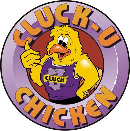 for instance a few weeks ago i was riding in my friend sidi's car and i saw a cluck u chicken menu chillin on the ground (cluck u is a chicken joint,) i have never eaten there but i guess he has. anyway the 'mascot' of cluck u is a chicken bro with one of those athletic shirts (are they called jerseys i have no idea) i think the point is that he goes to 'cluck university' here is a picture